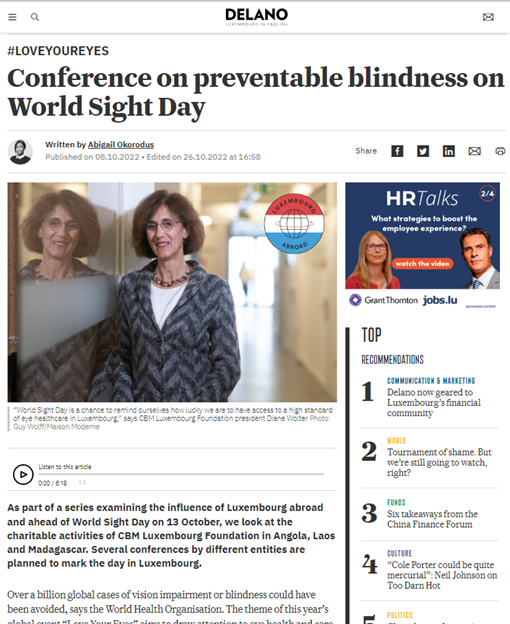 Die Präsidentin der Fondation CBM Luxembourg, Diane Wolter, wird im Vorfeld der CBM-Konferenz 2022 vom luxemburgischen Magazin Delano geinterviewt.